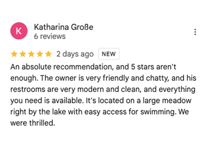 Everything you need for a comfortable and relaxing stay by the lake — from well-equipped pitches to clean facilities and beautiful natural surroundings.